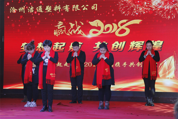 冬去春回又一載,似水流年旺年來(lái)。2018年2月12日下午,滄州潔通塑料有限公司2017年年會(huì)在正達(dá)大西洋酒店隆重舉行。潔通公司全體員工歡聚一堂,在熱情、溫馨、歡樂(lè)的氣氛中回首2017年取得的成績(jī),共同迎接2018年的到來(lái)。