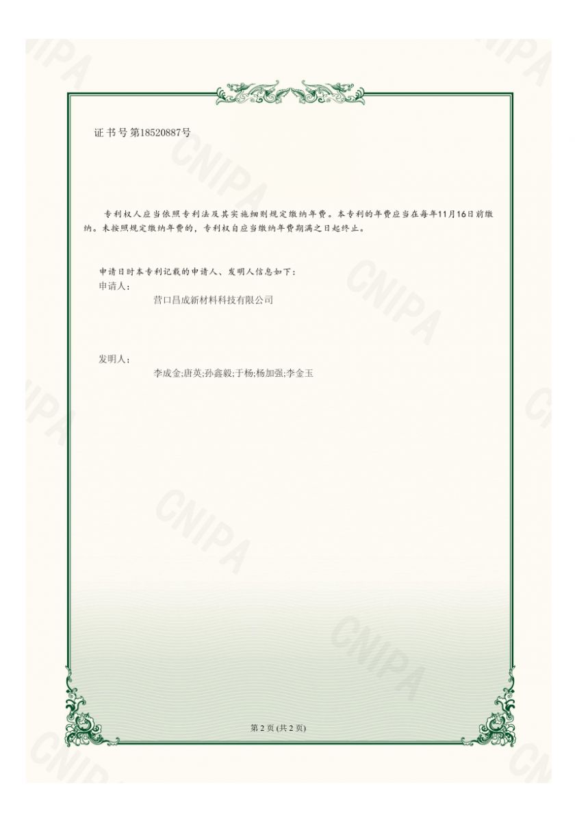Copyright(C)2021,Yingkou Changcheng New Material Technology Co., Ltd. All Rights Reserved.