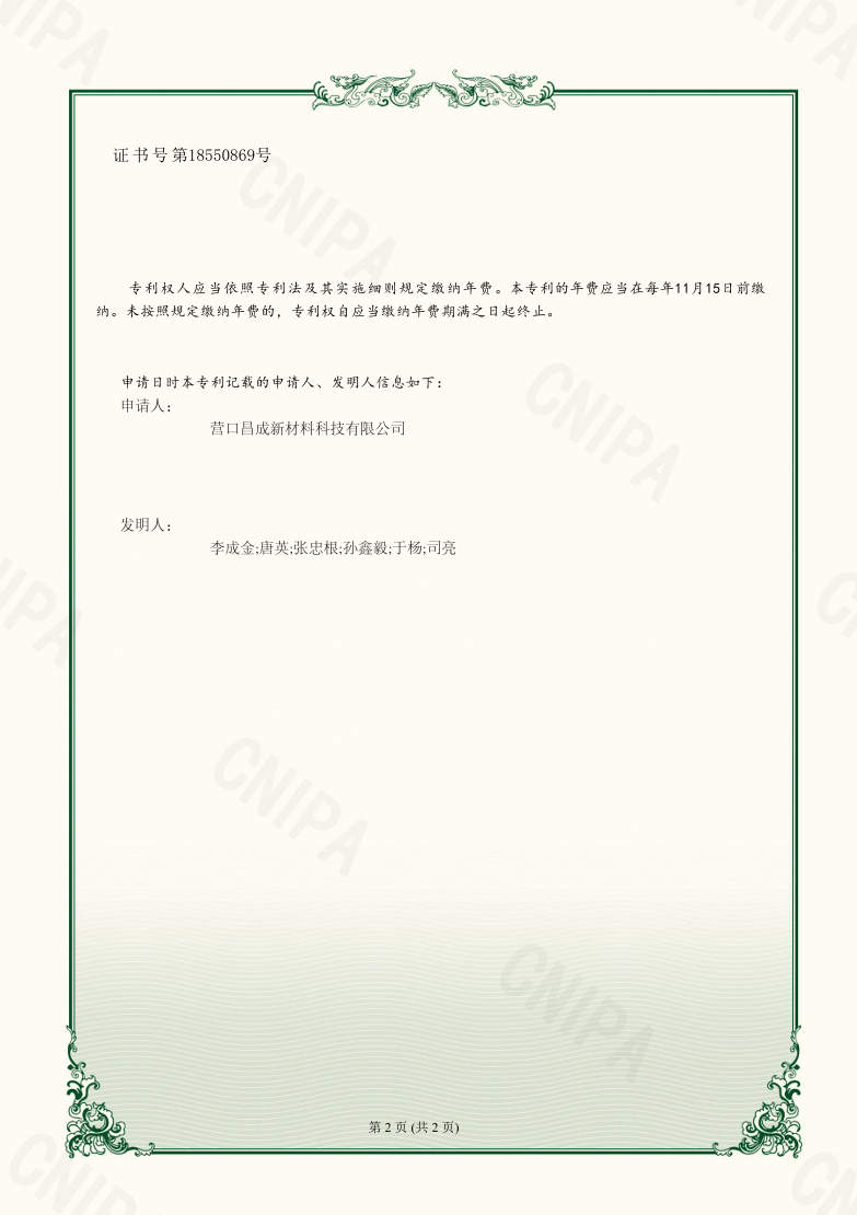 Copyright(C)2021,Yingkou Changcheng New Material Technology Co., Ltd. All Rights Reserved.